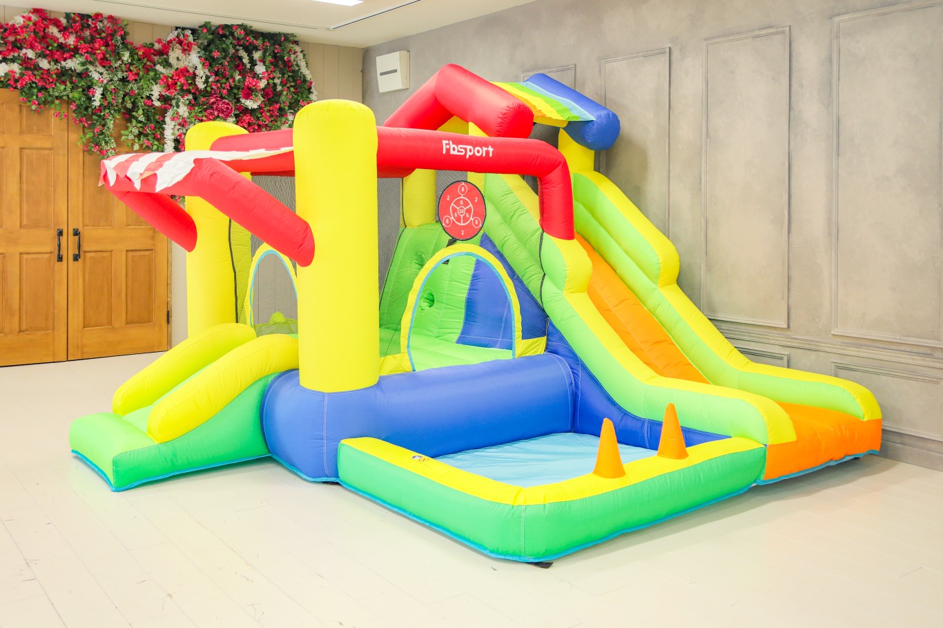 ①お子様が大好きなエアー遊具やトランポリン